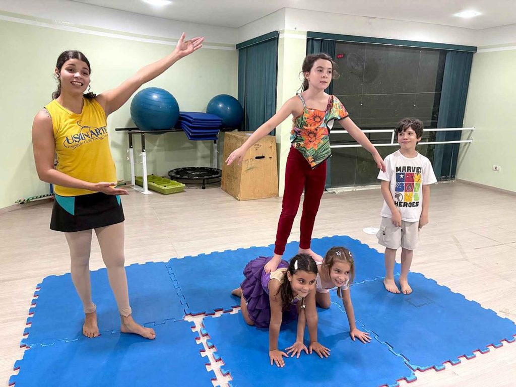 Crianças descobrem a arte do circo em aulas de acrobacia, tecido aéreo e malabares